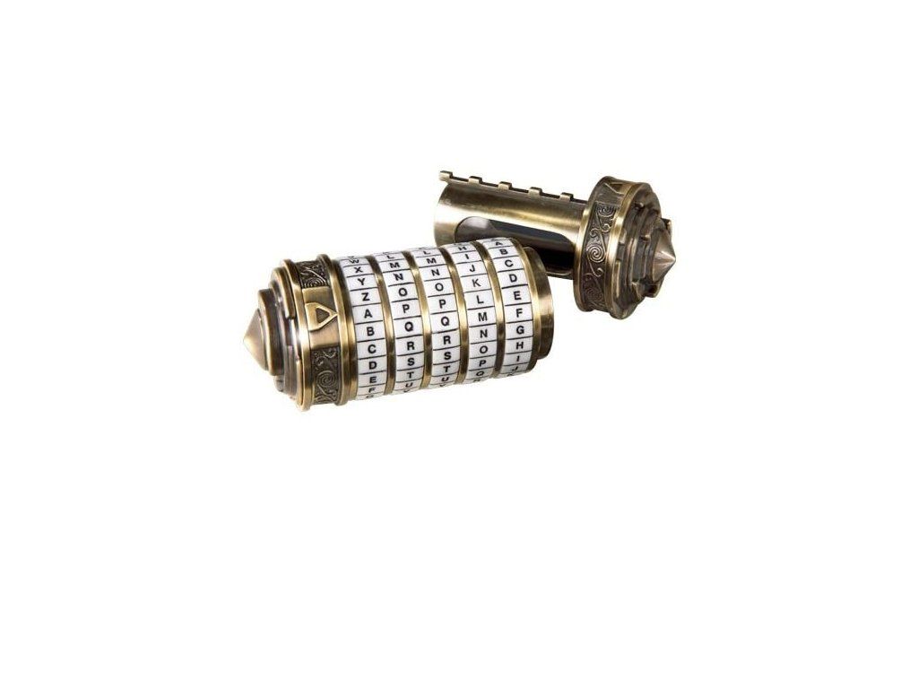 Това е оторизиран миниатюрен работещ модел на криптекса от филма Шифърът на Леонардо. Отваря се със зададена парола и можете да я промените по всяко време. Запазвайте бележки, стихове, бижута, ключове или други ценности. Използването на този криптекс е ограничено само от вашето въображение. Освен това е идеален подарък.