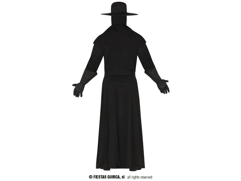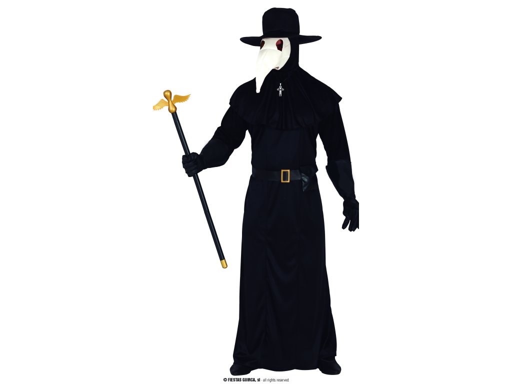 Навлезте в мрачната история и предизвикайте страхопочитание и ужас с този впечатляващ мъжки костюм. Костюмът точно възпроизвежда класическия вид на чумния лекар от 17-и век, включително отличителна маска с дълъг клюн, черна шапка и дълго наметало. Този костюм е идеален за Хелоуин, тематични партита или карнавал. С този костюм гарантирано ще привлечете вниманието на всяко събитие.