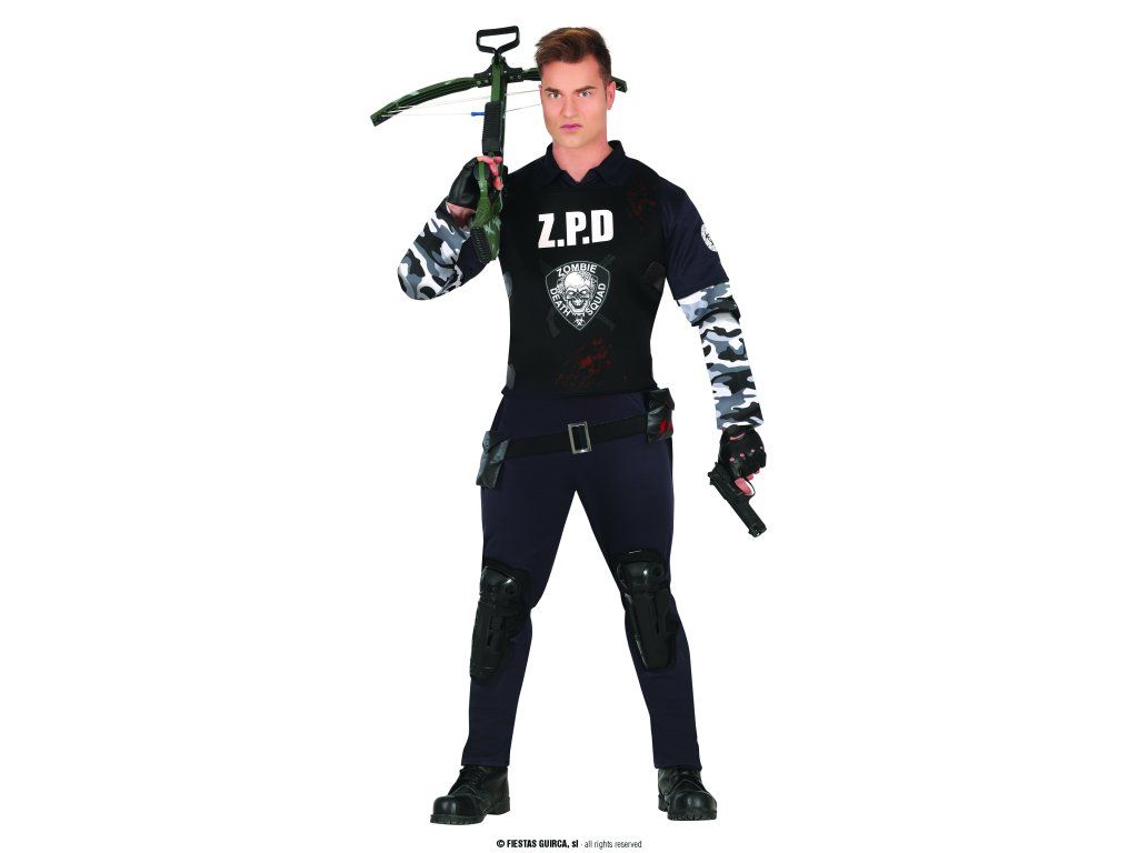 Мъжкият костюм на зомби полицай включва: