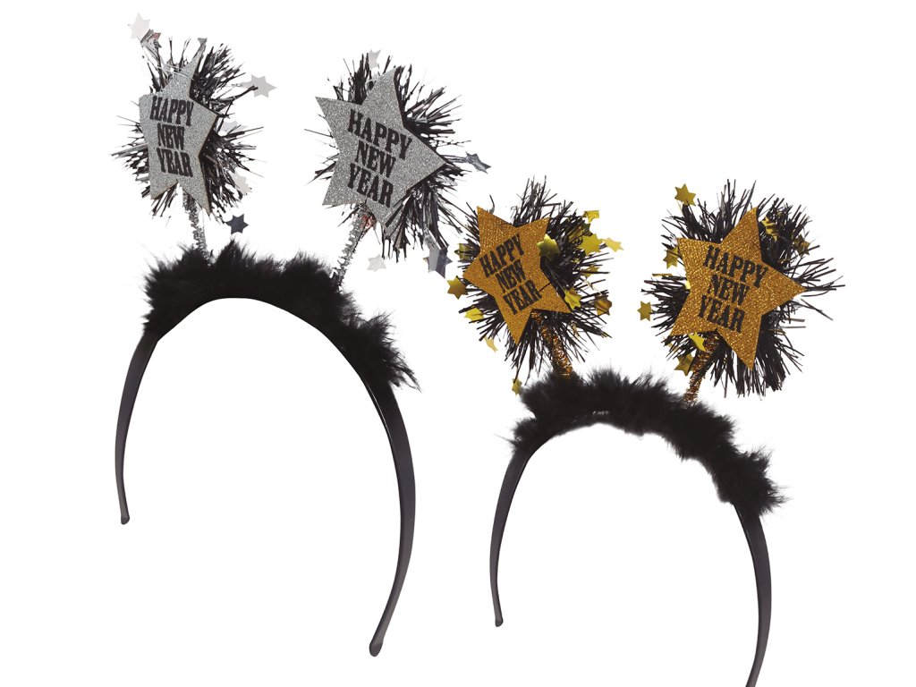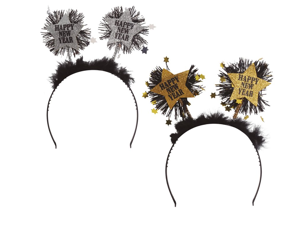 Новогодишна диадема за глава - Честита Нова Година златна/сребърна