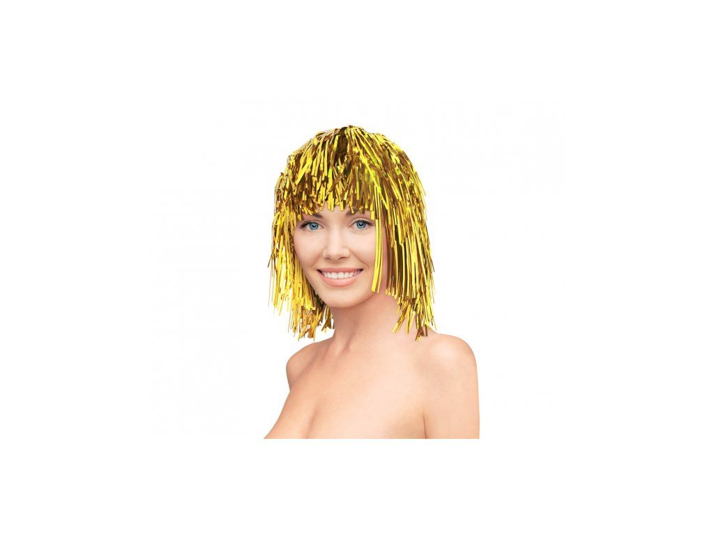 Вашият карнавален костюм може да изглежда още по-истински сега благодарение на различни аксесоари като класическата перука от златно фолио. Този аксесоар е подходящ за карнавални костюми, за партита или други поводи за празнуване.