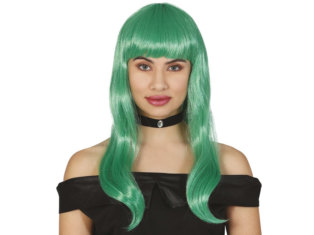 Перука - зелена дълга с бретон