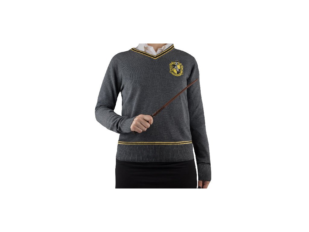 Носете пуловер с емблемата на Хафълпаф от Хогуортс следващия път, когато отидете да омагьосвате или приготвяте еликсири! Сивият пуловер с цветния герб на Хафълпаф не оставя никого на съмнение, че ученикът има пред себе си заклинание от магическия свят на Хари Потър.