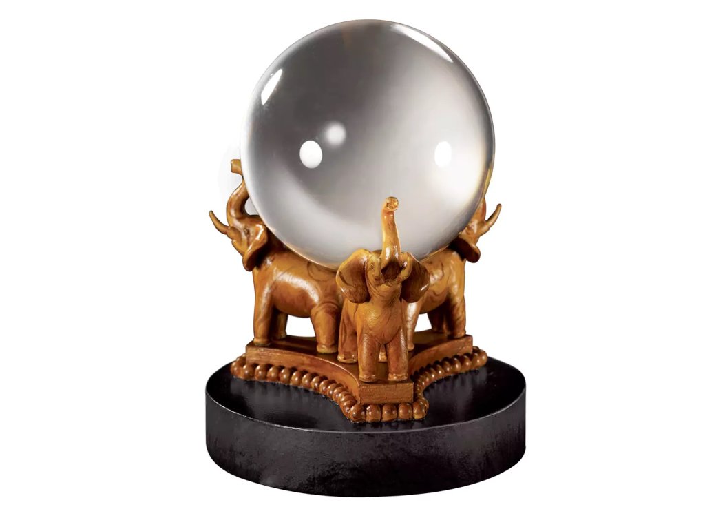 Сфера за гадаене на професора Сибил Трелони е емблематичен артефакт от света на магьосниците Хари Потър. Тази сфера за оракули е част от уроците по гадаене в Училището за магии и вълшебства в Хогуортс и често се свързва с идеята за мистерия и мистицизъм. Тази реплика е изработена точно, за да пресъздаде възможно най-точно нейния характерен външен вид. Сред феновете на Хари Потър топката за оракули на професор Трелони е популярен и търсен артикул. Много хора желаят да притежават реплика на това кълбо като колекционерски предмет или декоративен елемент в колекцията си Хари Потър.