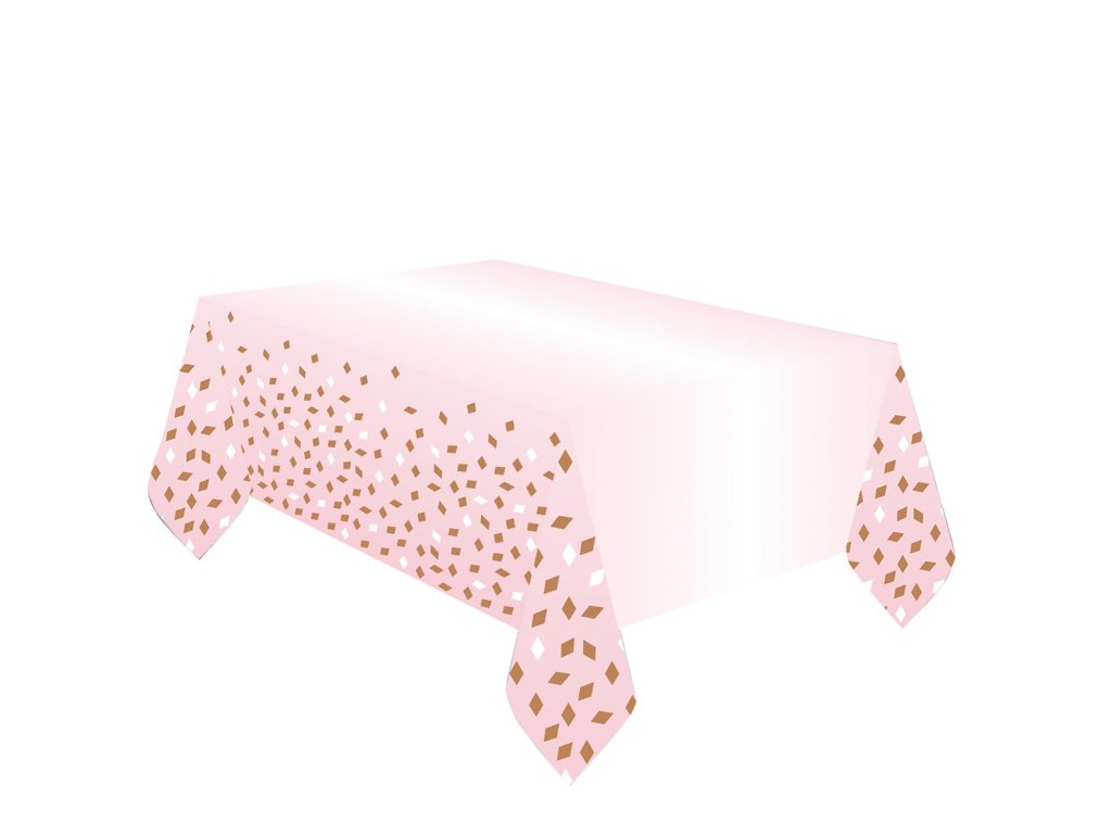 На всяко тържество трябва да има оригинална покривка на масата. Розово-златната покривка е подходяща за всяко парти, рожден ден или друг повод.