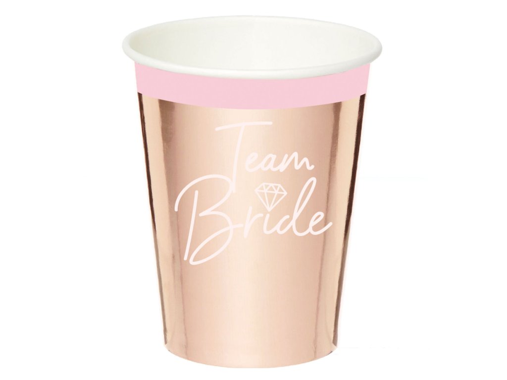 Розово-златни чаши - Team Bride 8 бр. 250 мл