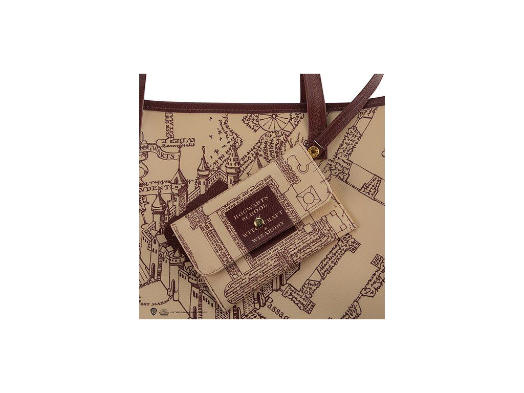 Оригинална пазарска чанта с дизайна на хитроумната карта , която ще побере всичко необходимо за уроци по магия. Дамската чанта Хари Потър ще бъде правилният подарък за Хари Потър и неговия любител на книгите. Чантата съдържа малък джоб с клипс, в който можете да съхранявате ключове или други ценности.