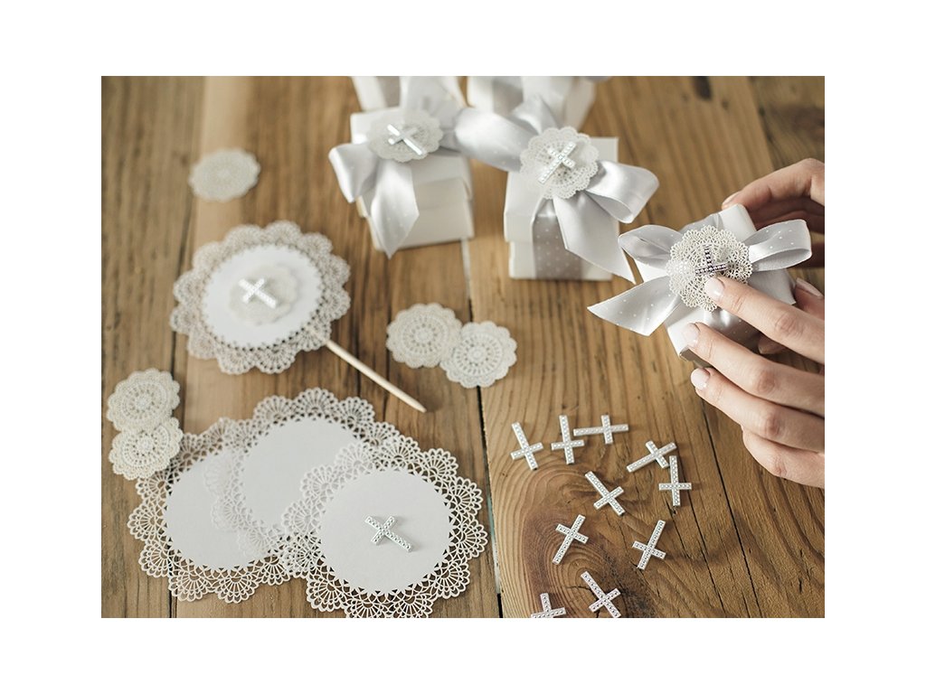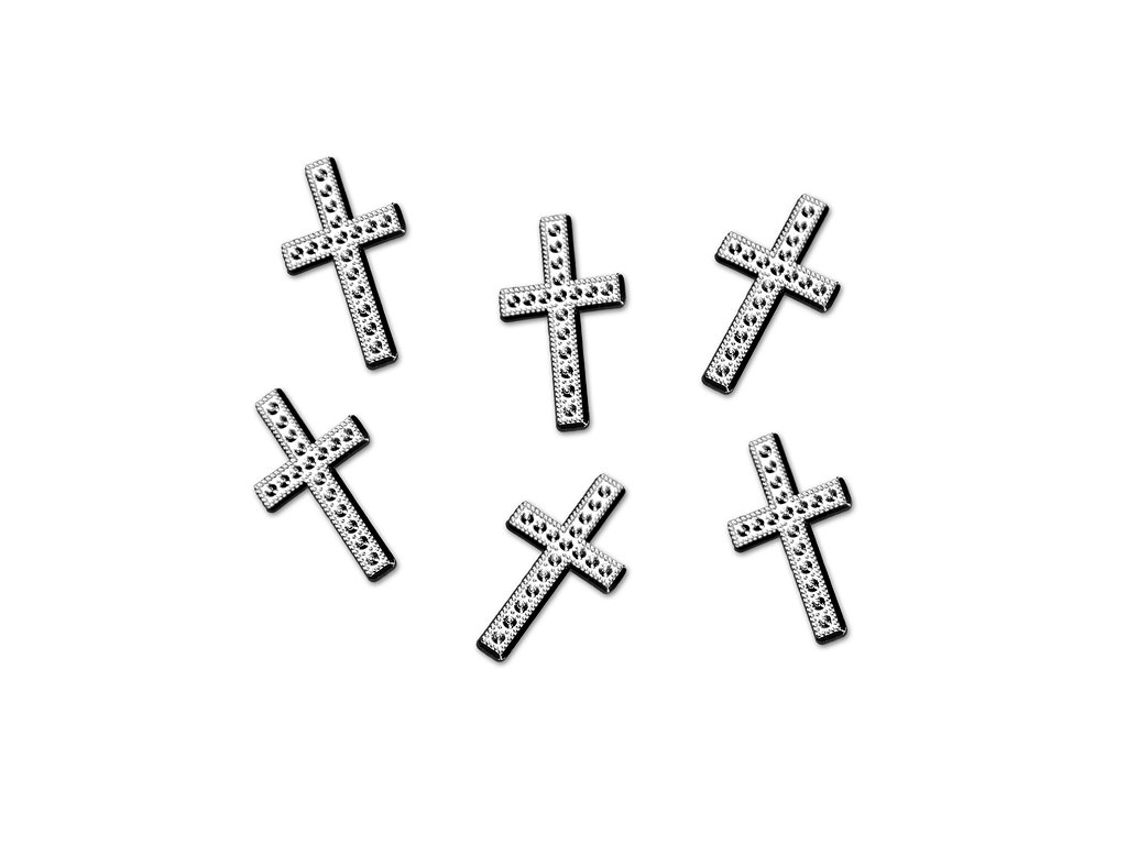 Тези красиви сребърни кръстове могат да се използват като декорация, като украса за торта или маса. Те са замислени като украшение за кръщение или св. причастие.