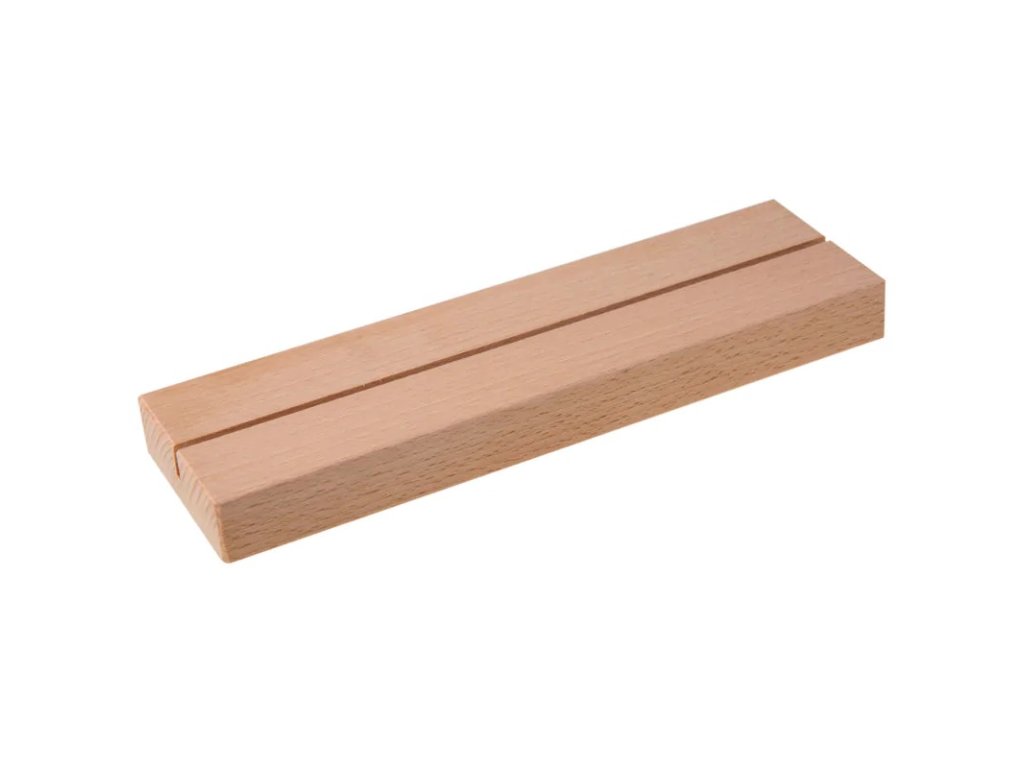 Тази елегантна дървена стойка е подходяща за всяко събитие и има много приложения! Стойката ви позволява да представяте менюта, сертификати, брошури и други документи. Просто плъзнете в подготвената вдлъбнатина в горната част и поставете поставката на желаното място.
