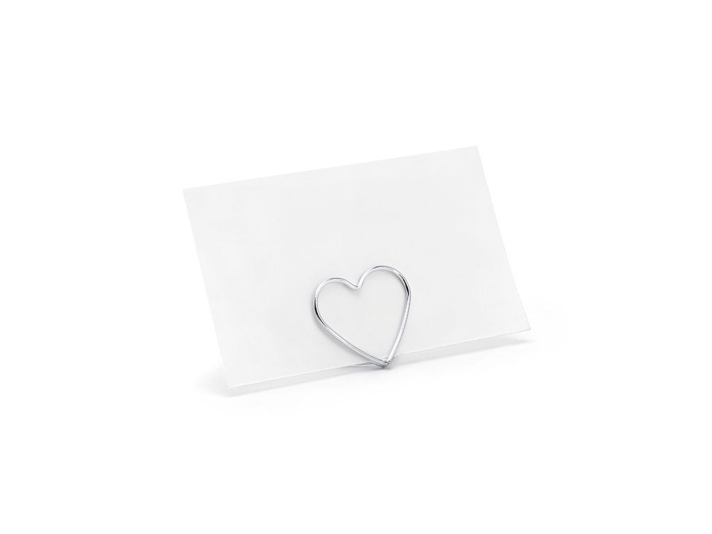 Стойка за табелка с име - Сребърно сърце 10 бр
