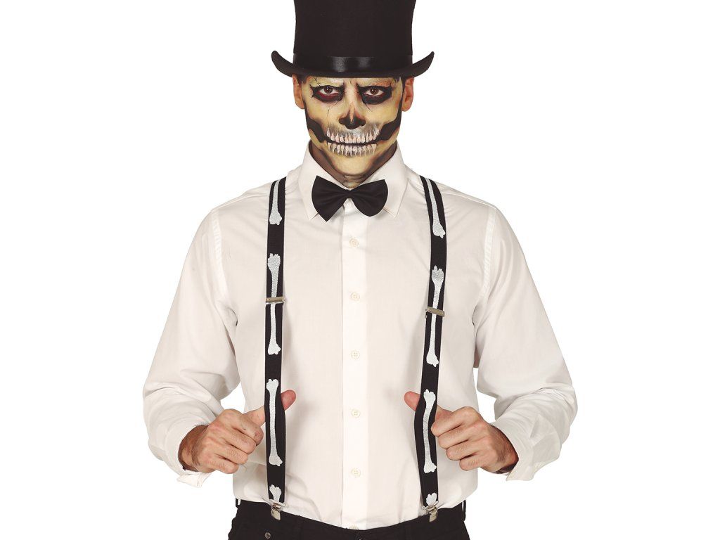Вашият карнавален или Хелоуински костюм също може да изглежда по-достоверно благодарение на различни аксесоари като тези Тиранти с мотив скелет. Този аксесоар пасва с различни карнавални костюми, разбира се, че това го оставяме на Вашето въображение.