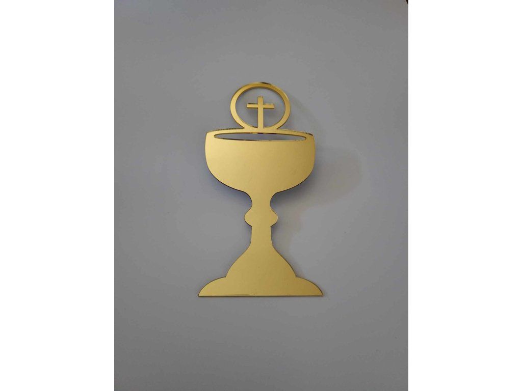 Уникална златиста декорация във формата на потир е идеалният вариант за допълнение към тортата за причастие. Благодарение на тази елегантна декорация, можете да превърнете дори обикновената торта в уникална, на която всички ще се възхищават.