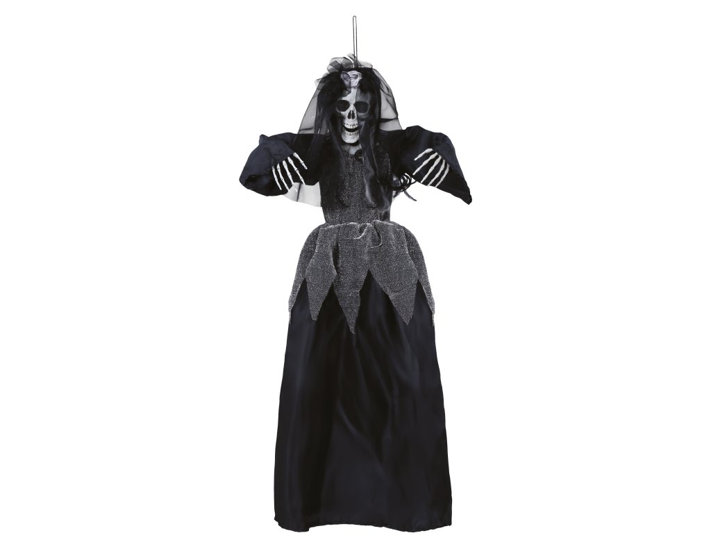 Организирате зловещо парти за Хелоуин? Създайте ненадмината атмосфера за Хелоуин с помощта на различни страховити декорации. Тази висяща декорация във формата на скелет на булка е чудесен парти аксесоар и украса за Хелоуин за любителите на Хелоуин.