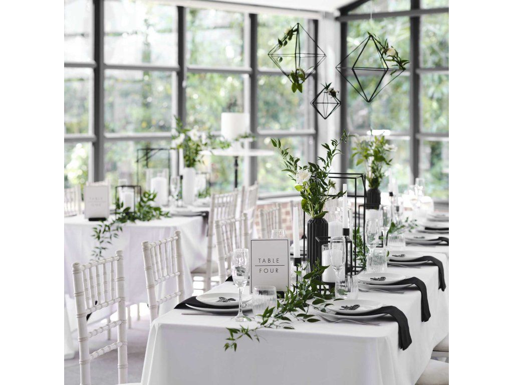 Украсете сватбеното си тържество с тези геометрични метални висящи декорации в черно, които украсяват и създават впечатляващ детайл на цялото тържество. То може да бъде украсено в съответствие с вашата тема.
