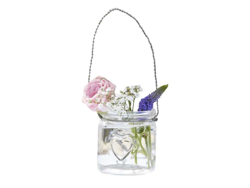 Висящите стъклени поставки за чаени свещи ще създадат романтична атмосфера, когато денят се превърне в нощ, а свещите заблестят на вашето парти. Стъклените поставки за чаени свещи са с украсена в стъклото форма на сърце - металната тел ви позволява да окачите чаената свещ на клони, пирони и куки.